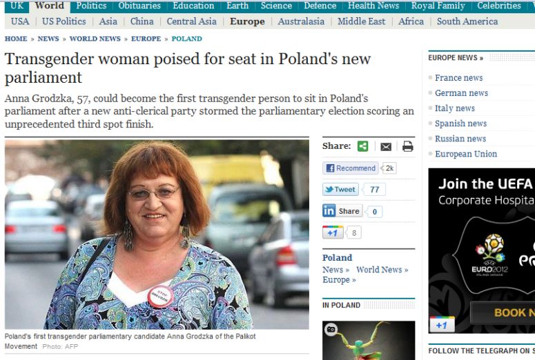 Media na całym świecie zauważyły, że w polskim Sejmie zasiadła pierwsza w Europie (a druga na świecie) transseksualna posłanka – Anna Grodzka.