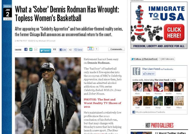 Dennis Rodman powraca. Najbardziej znany „zły chłopiec” koszykówki postanowił zostać trenerem – będzie prowadził zespół koszykarek występujących… topless. Podobno nabór do zespołu już ruszył.