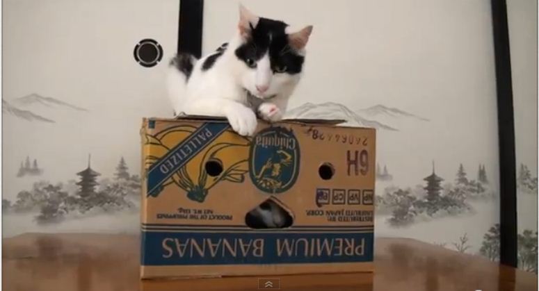 Dwa koty i pudełko po bananach
