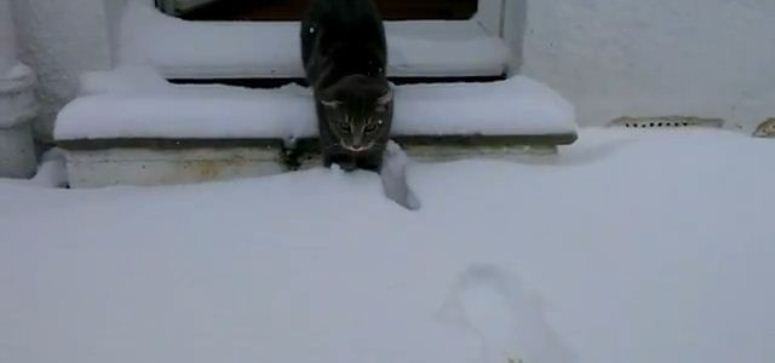 Kot po raz pierwszy widzi śnieg