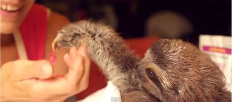 Mały leniwiec Matty z pewnością wie w jaki sposób oczarować kobietę.