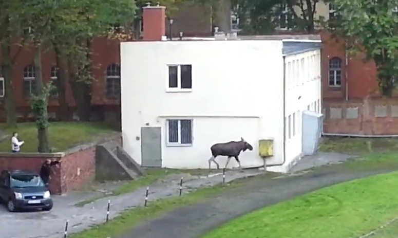 Łoś pojawił się niespodziewanie na terenie boiska Liceum Ogólnokształcącego im. Mikołaja Kopernika w Kołobrzegu. Duże zwierzę zostało sfilmowane przez uczniów liceum, którzy przy okazji skomentowali ten fakt „młodzieżowym” językiem.