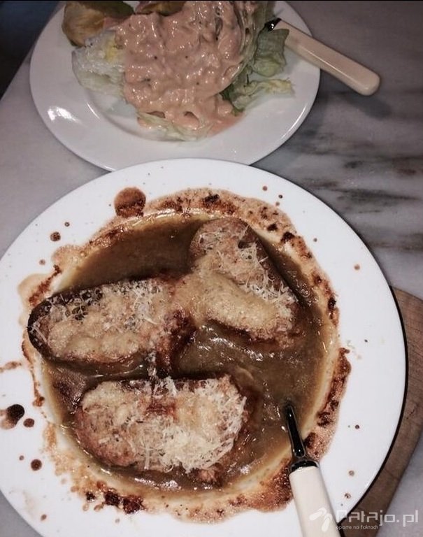 Widzę, że moje jedzenie was poruszyło. Zupa cebulowa była niewiarygodnie pyszna, a sałata wręcz boska.