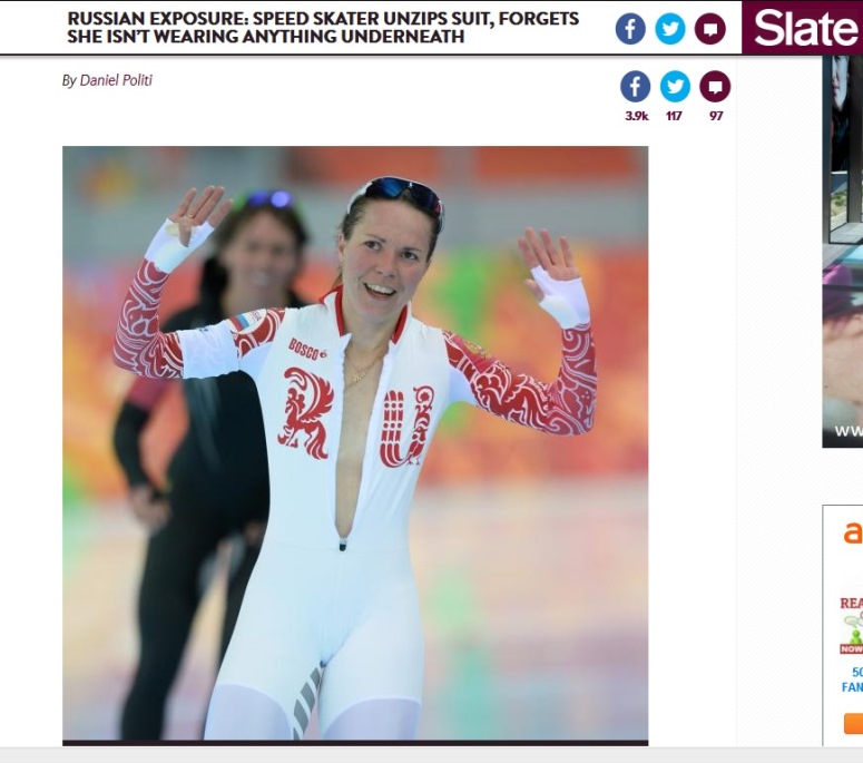 Po wyścigu, panczenistka wykonała rundę honorową wzdłuż trybun. A żeby pomóc swojemu organizmowi obniżyć temperaturę po wysiłku, rozpięła kombinezon. Sportowcy robią tak niemal zawsze, jednak Rosjanka być może trochę przesadziła z głębokością dekoltu. Tym bardziej, że pod kombinezonem nic nie miała.