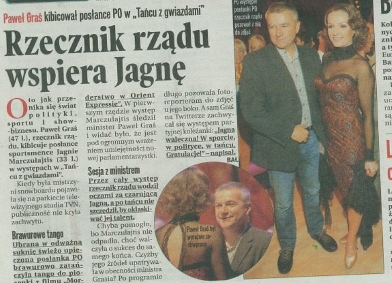 Okazuje się, że przybył z misją, aby wesprzeć nową posłankę Platformy, Jagnę Marczułajtis – Walczak. Pani Jagna nie kryła radości, a polityk PO zachwytu nad ognistym tangiem posłanki 😉