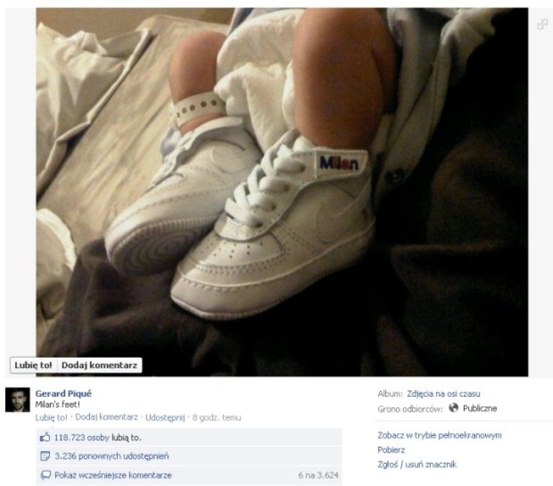 Pique wrzucił na facebooka zdjęcie syna Milana