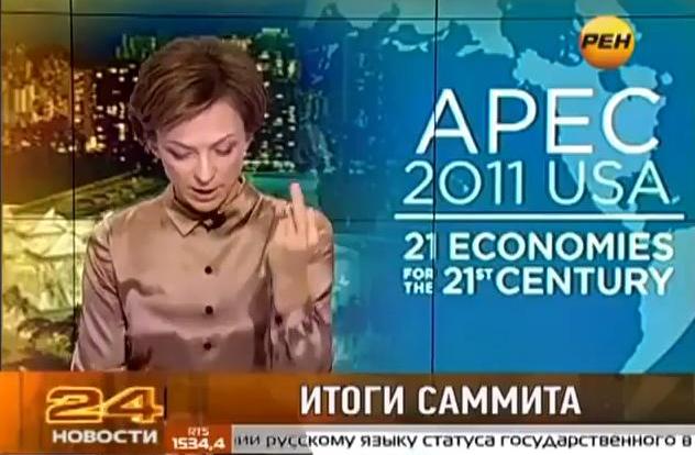 Rosjanka czytała informację dotyczącą szczytu Wspólnoty Gospodarczej Azji i Pacyfiku, w którym brali udział m.in . prezydent Rosji, Dmitrij Miedwiediew i prezydent USA, Barack Obama. Tuż przed rozpoczęciem materiału filmowego, Limanowa jak gdyby nigdy nic podniosła rękę i pokazała widzom środkowy palec. Po czym, bez zająknięcia przeczytała dalszą część wiadomości.