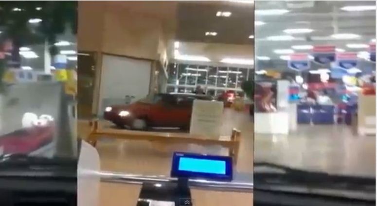 Nastolatki postanowiły się zabawić i przejechać samochodem marki Tico przez supermarket.