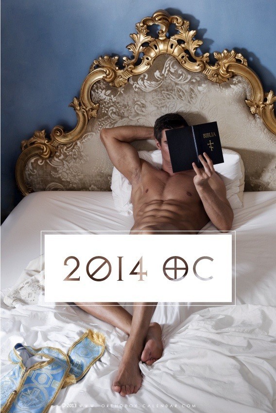 Na stronach kalendarza widzimy zdjęcia półnagich modeli w strojach prawosławnych księży.