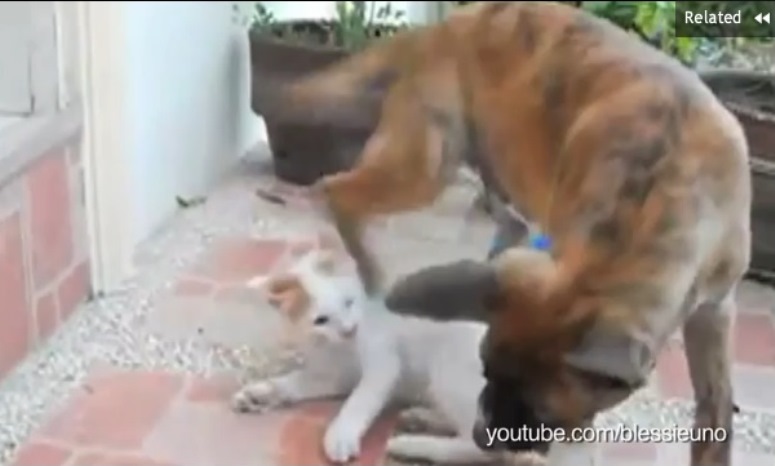 Koty robią często psom, z którymi mieszkają pod jednym dachem różne psikusy – śpią na ich kocach, odmawiają im przyjaźni, a nawet delikatnie uderzają je w pyszczek.